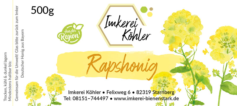 Der Ursprung dieser milden und gleichzeitig aromatischen Honigspezialität sind die leuchtend gelben Rapsfelder, die im Frühling mancherorts das Landschaftsbild prägen.