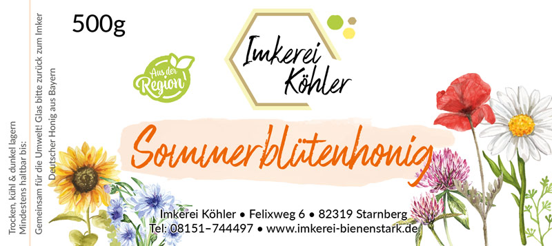 Die ganze Vielfalt und der Duft des Sommers im Glas. Wiesenblumen, blühende Bäume wie Kastanie und Linde, machen diesen Honig zu einem Sommertraum auf jeden Frühstückstisch.