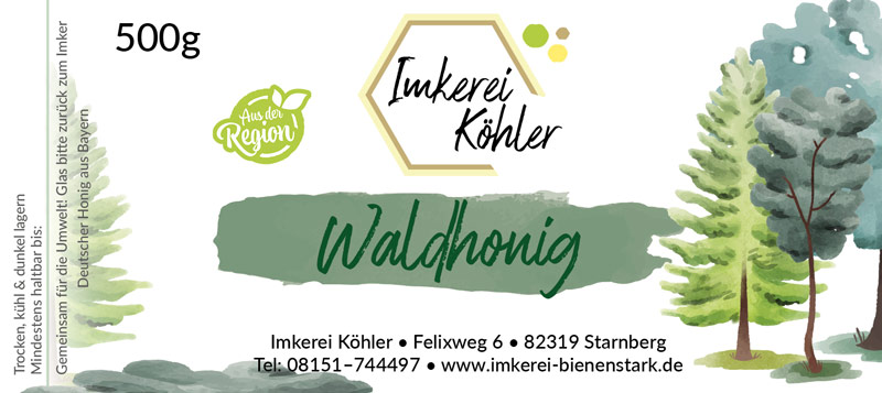 Waldhonig besticht durch seine dunkle Tönung, seinen kräftig–würzigen Charakter und eine malzige Note. Im Vergleich zu Blütenhonigen schmeckt er weniger süß und bleibt nach der Ernte lange flüssig und klar.
